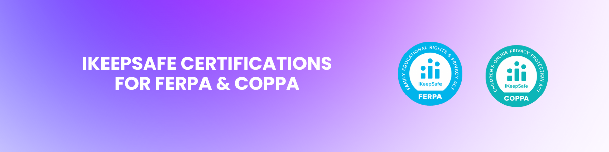 And while we've been FERPA and COPPA compliant since we began, we're excited to announce we've earned certifications by passing independent evaluations from from iKeepSafe to further build trust with our users.